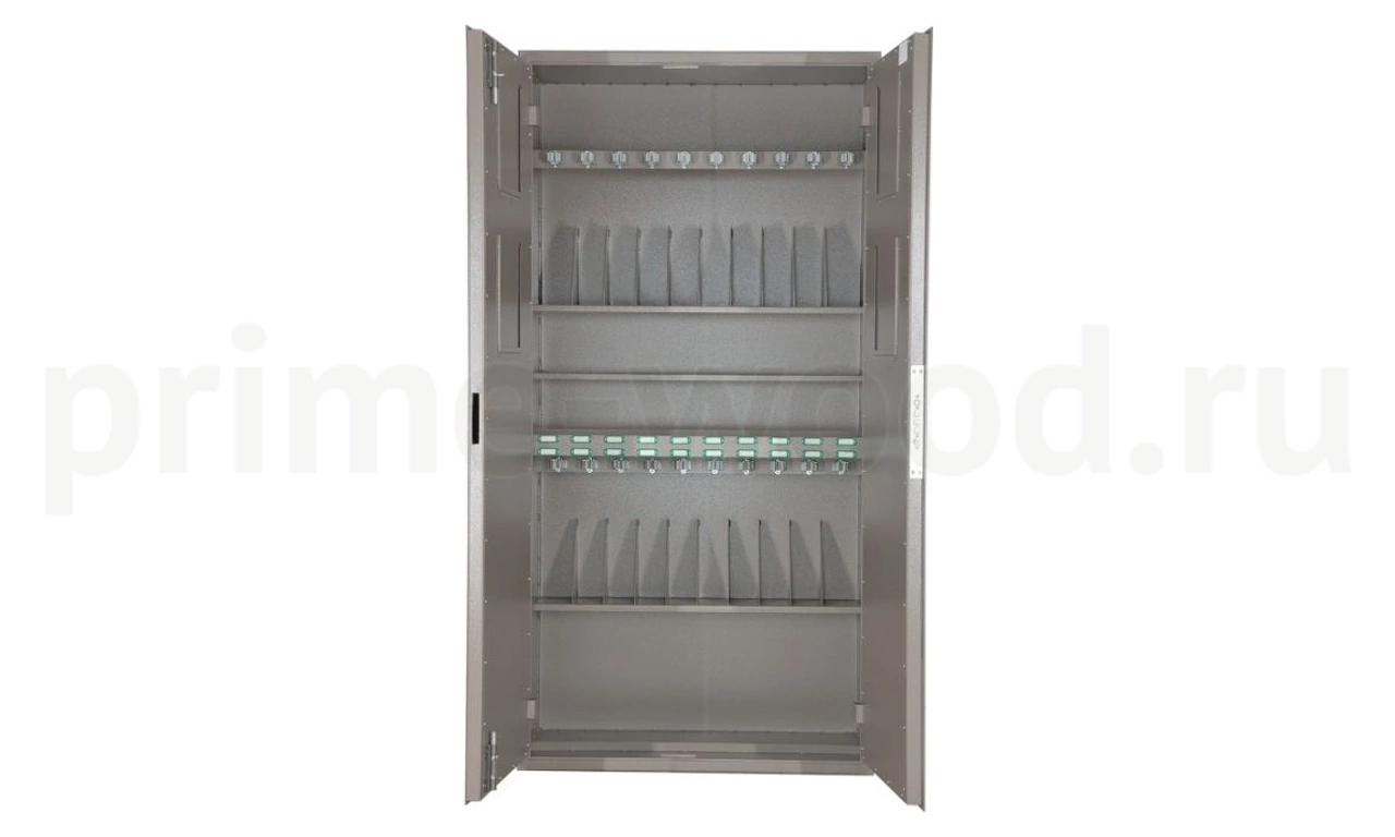 Сейф односекционный, на 20 стволов. Ложементы — металлические держатели с резиновыми роликами.