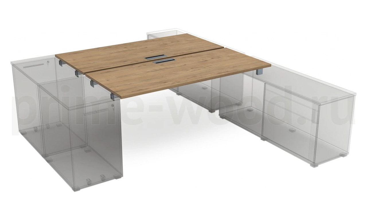 Стол системы Бенч, сдвоенный, на 2 рабочих места (крепление к тумбам)
