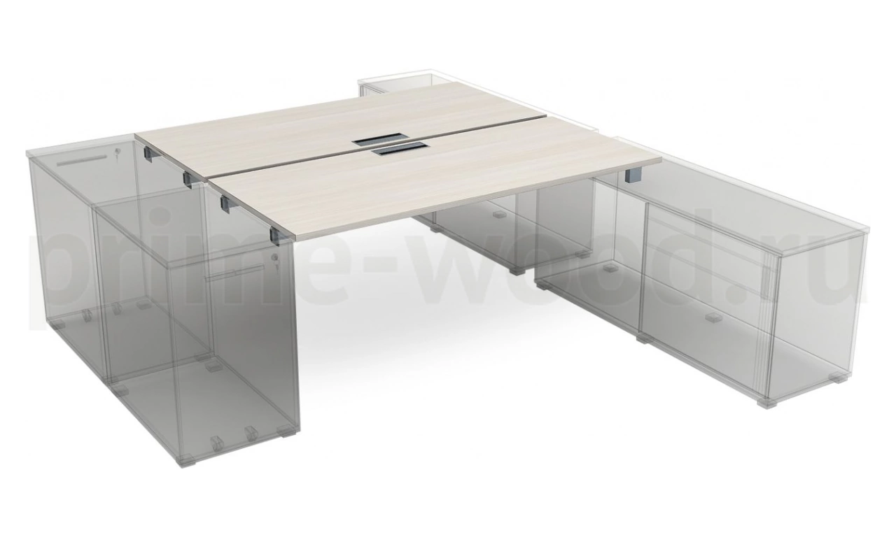 Стол системы Бенч, сдвоенный, на 2 рабочих места (крепление к тумбам) GLOSS 140x164x75
